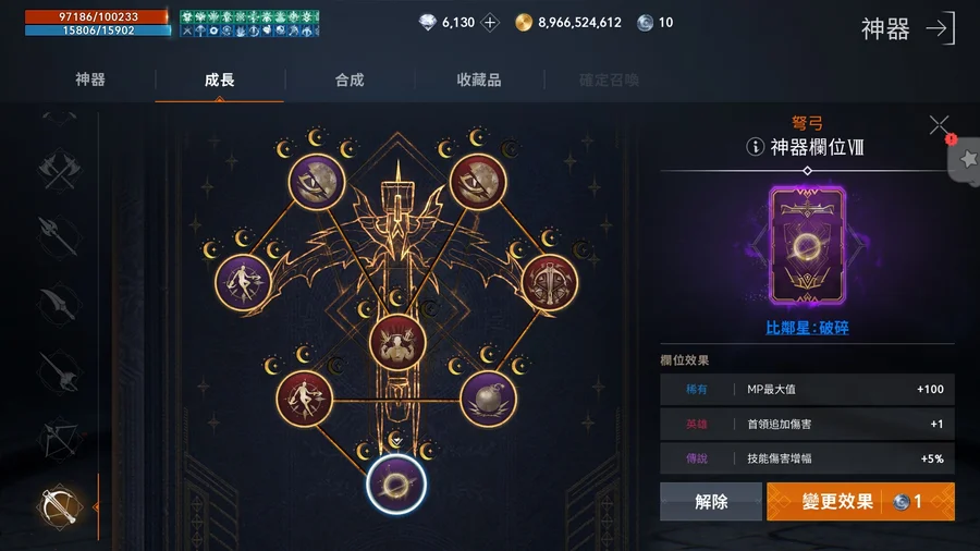 ★神器:本職4紫神器,13紅神器,另有他職1紫神器
