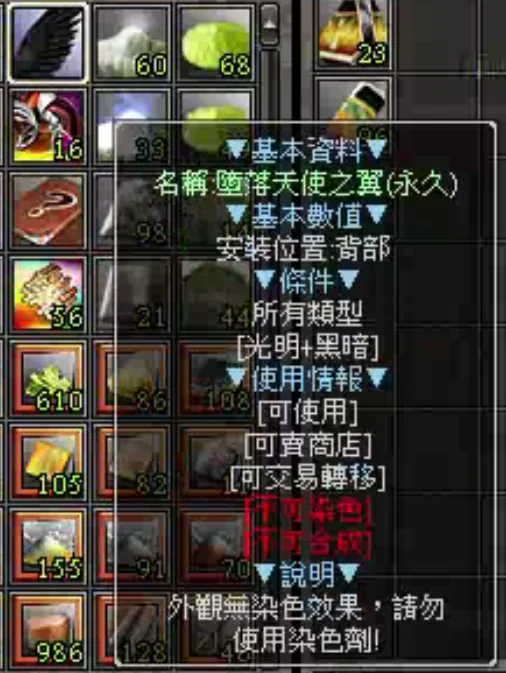 墮落天使之翼or神聖天使之翼or銀龍狂舞任選其一