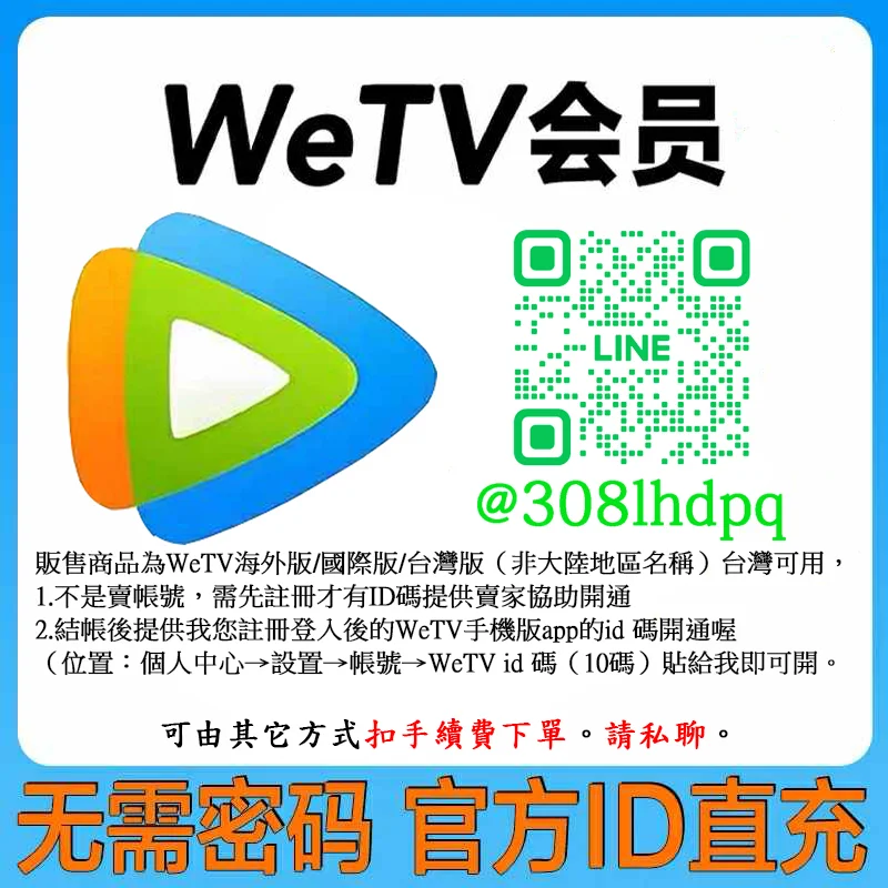 2.付款後提供我您註冊登入後的WeTV手機版app的id 碼開通喔(位置:個人中心→設置→帳號→WeTV id 碼(10碼)貼給我即可。