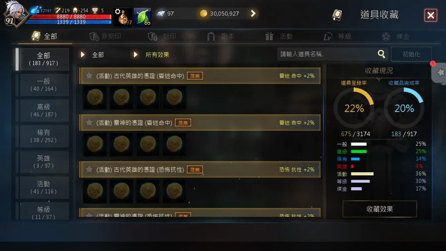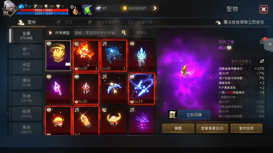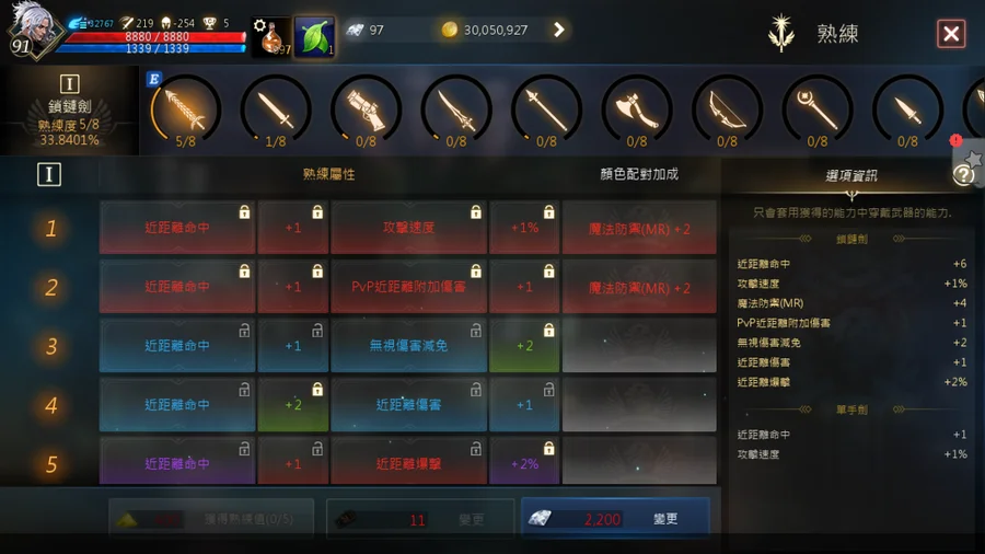 【技能】1金 5紫 8紅 1金為金技箱 未開