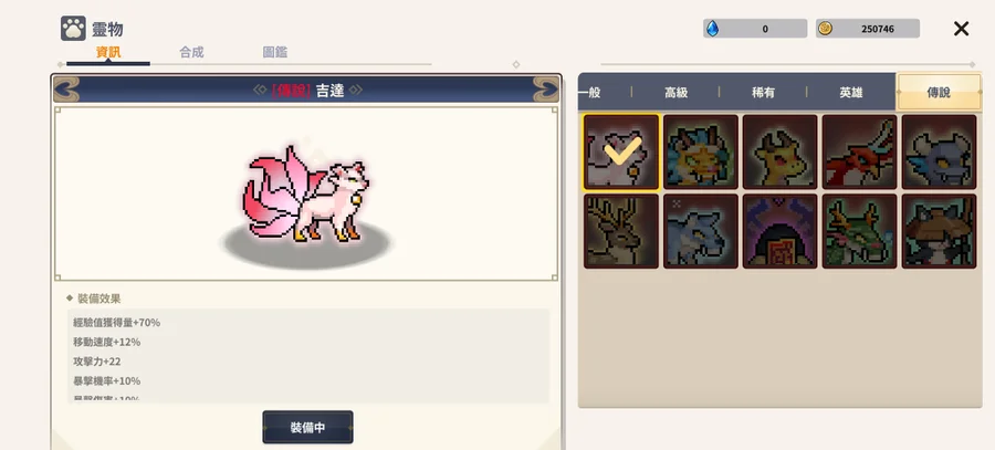 目前寵物有 (吉達)(貓傘)(異武)(獬豸)(青鶴)