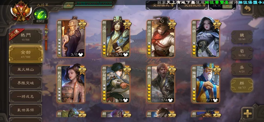 【999等】退遊便宜賣 可議價 神筍彧 5星神曹操 各式強力武將 24寶珠