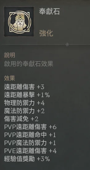 遠距離爆擊 32%、無視傷害減免95、傷害減免105、PVP傷害減免34