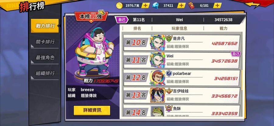已合服 戰力排行第11 潛力號 本區最大盟 菁英成員