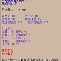 xG+10大官屬傳說哈比頭(47等新手頭部裝備)