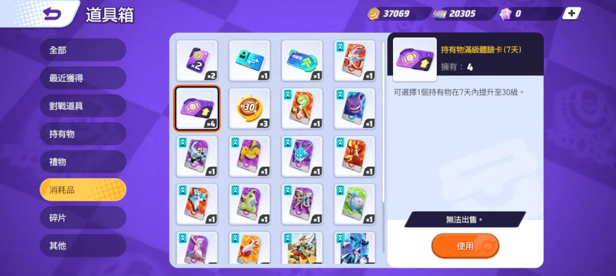 ~三個超級持有物強化組件&四個持有物滿級體驗卡(如圖)