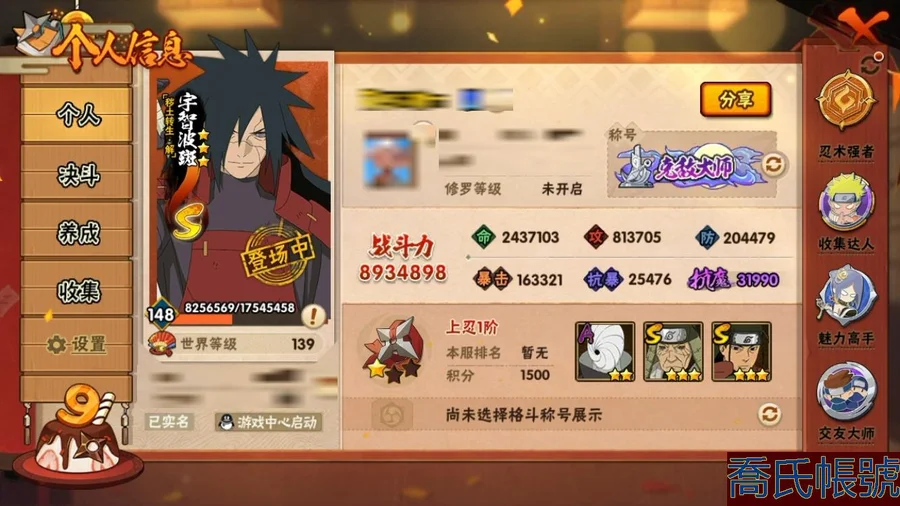 【OBHLLXQ565942】戰鬥力:893W+;段位:上忍1階;本服排名:271;戰區排名:未上榜;VIP11級;S忍20個;A忍31個;通靈獸18個;S忍:千手柱間,須佐能乎旗木卡卡西,須佐能乎宇智波止水,穢土轉生宇智波斑,猿飛日斬,穢土轉生千手柱間,忍界大戰艾,舞之豪傑自來也,傳說中的三忍自來也,須佐能乎宇智波鼬,穢土轉生解宇智波斑,永恆萬花筒宇智波佐助,三代目雷影艾,穢土轉生宇智波鼬,穢土轉生猿飛日斬,大蛇丸,波風水門,九喇嘛連結漩渦鳴人,天道佩恩,仙人模式藥師兜;A忍:猿飛阿斯瑪,幹柿鬼鮫,疾風傳我愛羅,蠍,飛段,死司憑血飛段,仙人模式漩渦鳴人,萬花筒寫輪眼宇智波佐助,須佐能乎宇智波佐助,宇智波泉奈,百豪春野櫻,忍界大戰秋道丁次,忍界大戰日向寧次,忍界大戰李洛克,最終章日向雛田,幻之真容旗木卡卡西,萬花筒寫輪眼旗木卡卡西,青年波風水門,近松十人衛千代,五代目水影照美冥,忍界大戰奇拉比,青年艾,不緣,曉大蛇丸,緋流琥蠍,宇智波鼬,穢土轉生迪達拉,俠隱江湖大野木,桃式顯現漩渦博人,六代目水影長十郎,四代目土影黑土;通靈獸:忍犬,藍蛇,蛤蟆吉,忍龜,鐮鼬,猿魔,蛞蝓,山椒魚,蜃,蛤蟆仙人,鮫鯊,砂之守鶴,怒鬼爪,蛤蟆龍,蛤蟆健,烏鴉,辛牙,蛤蟆廣;時裝:百戰大蛇丸,狂野鮫鯊幹柿鬼鮫,百戰佩恩天道,百戰宇智波鼬須佐能乎,百戰波風水門,龍的傳人李洛克截拳宗師,編織虛實宇智波鼬,血霧怪人幹柿鬼鮫,熊貓少女天天峨眉宗師,純白之心白,剎那的藝術迪達拉,緋櫻綻放春野櫻百豪,傳說的光芒波風水門;【375】【蘋果QQ】可轉生