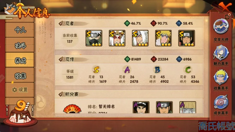 【OBHLLXQ781642】VIPV10級;S忍13個;A忍26個;通靈獸15個;S忍:傳說中的三忍自來也,白面具宇智波斑,須佐能乎旗木卡卡西,須佐能乎宇智波止水,穢土轉生千手柱間,忍界大戰艾,舞之豪傑自來也,須佐能乎宇智波鼬,天道佩恩,穢土轉生解宇智波斑,大筒木桃式,最終章大筒木舍人,波風水門;A忍:漂泊浪客宇智波帶土,俠隱江湖綱手,忍界大戰李洛克,穢土轉生角都,忍界大戰日向寧次,四代目土影黑土,青年波風水門,青年艾,近松十人衛千代,百豪春野櫻,忍界大戰秋道丁次,死司憑血飛段,疾風傳我愛羅,桃式顯現漩渦博人,不緣,緋流琥蠍,宇智波泉奈,穢土轉生桃地再不斬,迪達拉,飛段,邁特凱,宇智波鼬,幹柿鬼鮫,蠍,猿飛阿斯瑪,俠隱江湖大野木;永久通靈獸:砂之守鶴,藍蛇,蛤蟆吉,忍龜,鐮鼬,猿魔,山椒魚,蜃,蛤蟆仙人,蛤蟆健,蛤蟆龍,蛞蝓,忍犬,鮫鯊,烏鴉;【蘋果QQ】【664W戰力 白麵 綠牛 舍人13S+漂泊帶土 俠隱綱手雙198直購26A+2幕布+俠隱綱手紫皮+三百戰】 戰力664 忍者總數137 遊戲大區569 【可修改】 【VIP10】 S級忍者13 A級忍者26 B級忍者25 通靈獸15 時裝6 決鬥場景1 決鬥幕布2 S級忍者:穢土轉生解宇智波斑,舞之豪傑自來也,天道佩恩,須佐能乎宇智波鼬,波風水門,傳說中的三忍自來也,大筒木桃式,穢土轉生千手柱間,須佐能乎宇智波止水,須佐能乎旗木卡卡西,最終章大筒木舍人,忍界大戰艾,白面具宇智波斑; A級忍者:俠隱江湖大野木,死司憑血飛段,青年艾,俠隱江湖綱手,不緣,邁特凱,桃式顯現漩渦博人,忍界大戰李洛克,穢土轉生角都,緋流琥蠍,宇智波泉奈,漂泊浪客宇智波帶土,百豪春野櫻,蠍,疾風傳我愛羅,迪達拉,宇智波鼬,穢土轉生桃地再不斬,忍界大戰日向寧次,幹柿鬼鮫,猿飛阿斯瑪,四代目土影黑土,青年波風水門,近松十人衛千代,忍界大戰秋道丁次,飛段; B級忍者:新春兜,武當宗師日向花火,峨眉天天,御手洗紅豆,新春大和,最終章鹿丸,新春紅豆,少女櫻,卯月夕顏,最終章佐井,漂泊琳,咒印佐助,夕日紅,重吾,佐井,漩渦玖辛奈,少年卡卡西,白,咒印君麻呂,犬塚花,冬日限定夕日紅,我愛羅,「忍者之路」雛田,惠比壽,君麻呂; 通靈獸:忍犬,鐮鼬,蛤蟆仙人,藍蛇,猿魔,鮫鯊,蛤蟆吉,山椒魚,蛤蟆健,忍龜,蜃,烏鴉,蛤蟆龍,蛞蝓,砂之守鶴; 時裝:花火【武當宗師】,百戰宇智波鼬,百戰天道佩恩,百戰波風水門,蜀面豪傑,俠隱綱手【冷玉豪情】; 決鬥場景:月爆星河; 決鬥幕布:征服,宇智波夜;