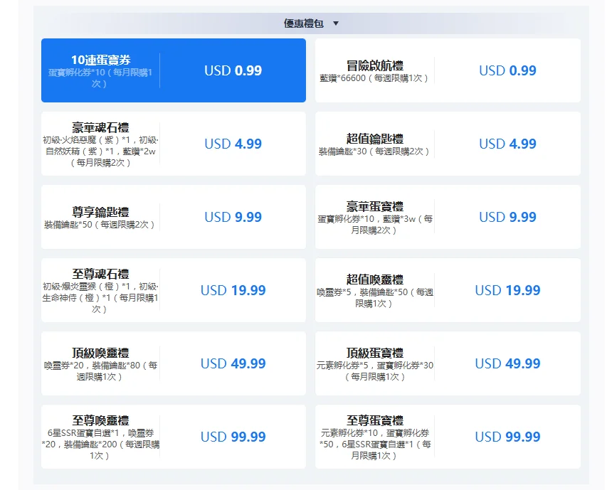 購買禮包商品者,請於下單後提供【禮包畫面截圖】
