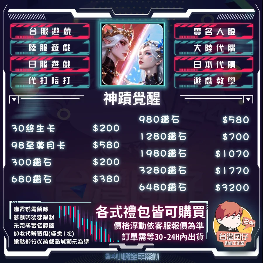 6️台灣囝仔台陸手遊代儲純粹為協助代儲服務,僅收取服務費,無賺取額外差價。