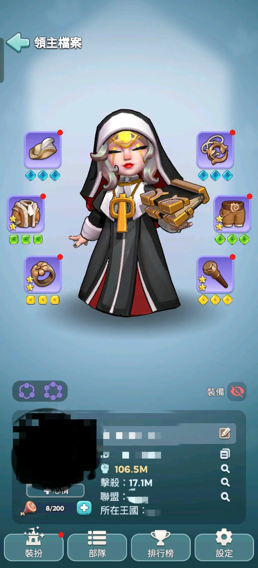 本帳號屬按照任務培養進度型,不是大鯨魚,但比同等城堡戰力紮實