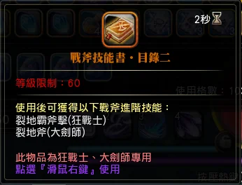 生命晶魄0階 100T斧頭技能書(60等) 300T