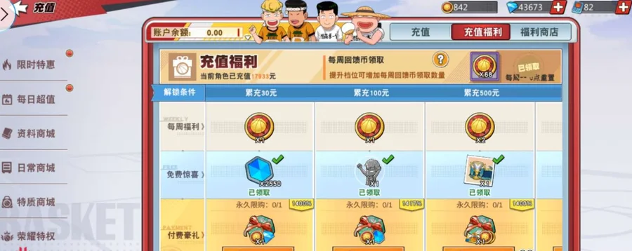 【GNZUB4290】6 位傳奇角色,傳三、傳流已滿配畢業!集訓天賦全滿,眾多角色達 9 覺,即戰力拉滿球衣數量豐富,穿搭選擇多樣累計充值 1 萬 +,底蘊紮實低價出讓,支持小議價,可換綁,安全有保障詳情看圖【蛙撲帳號】【自主截圖】