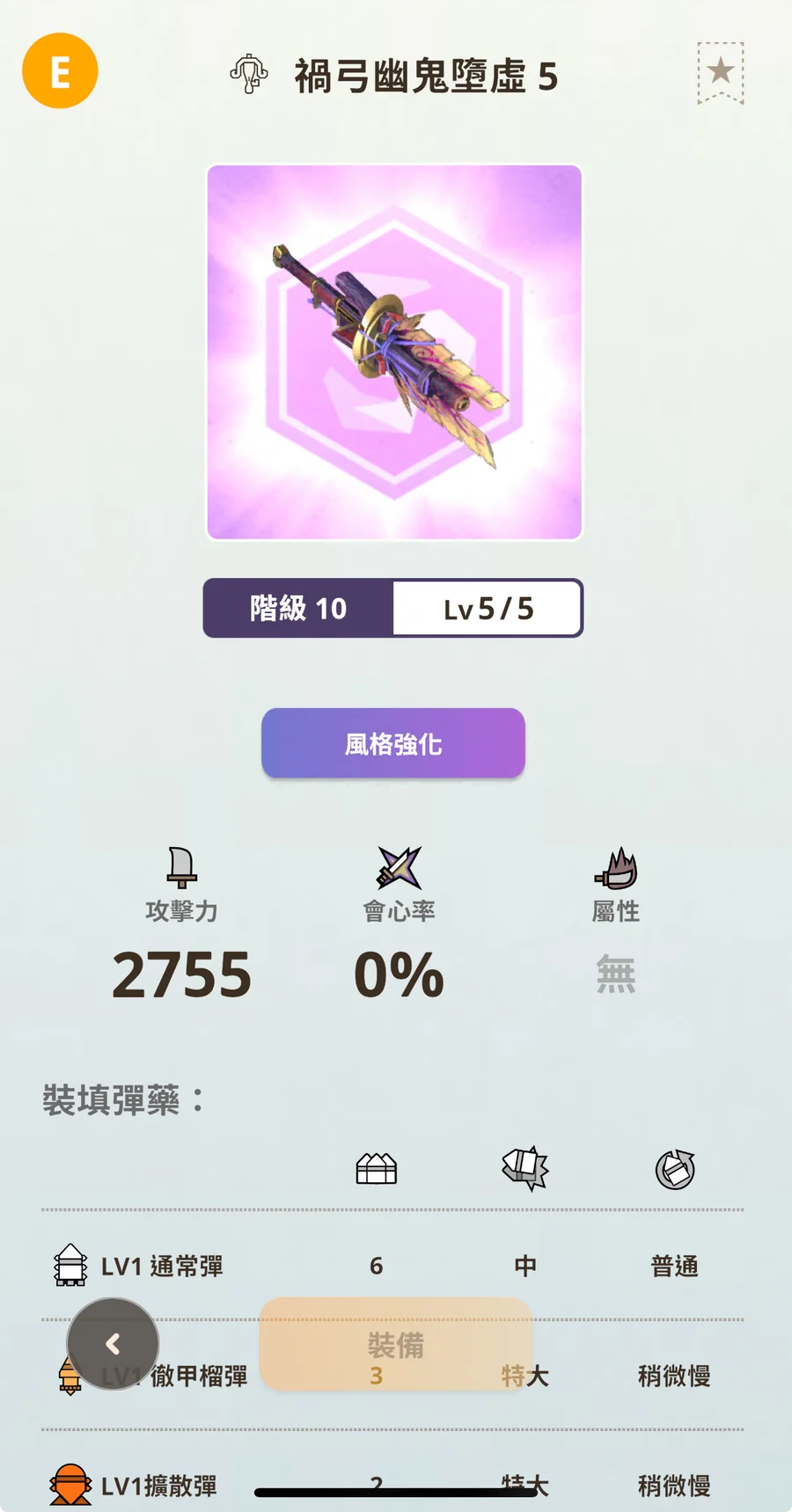 遠程武器(弩)可組後3裝3+連擊2+弱特2套裝,