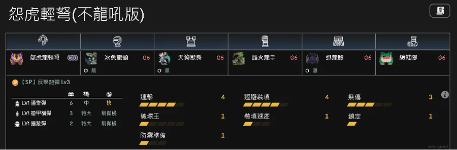 發動技能: 裝填防禦3+防禦性能+後座力減輕2+雷屬強化3