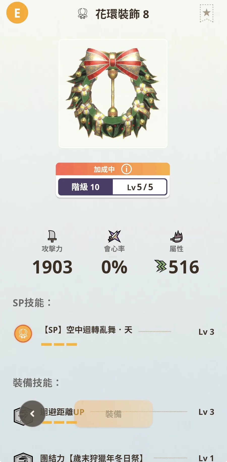 裝備素材已預留