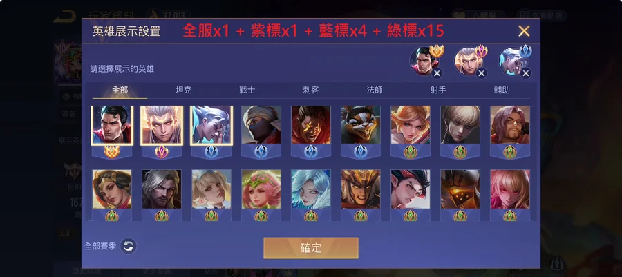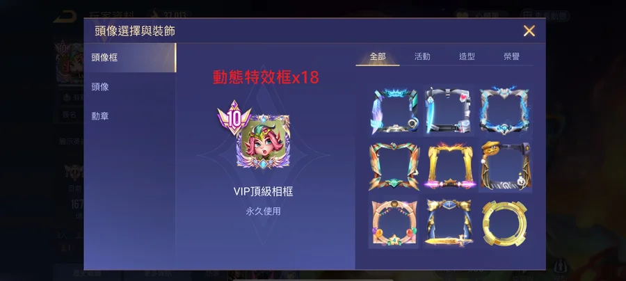 📌全奧義、金幣52萬、全服標、紫標、動態框x18