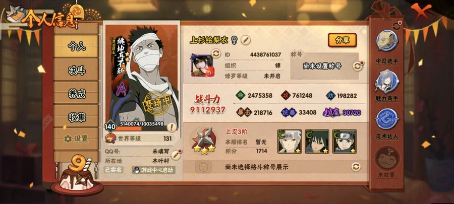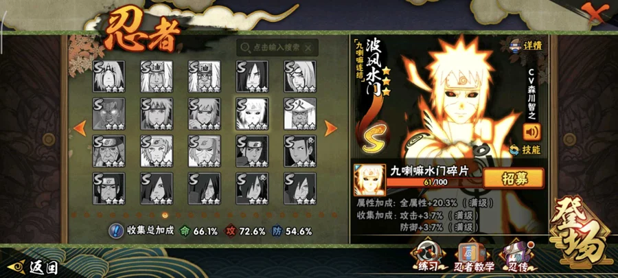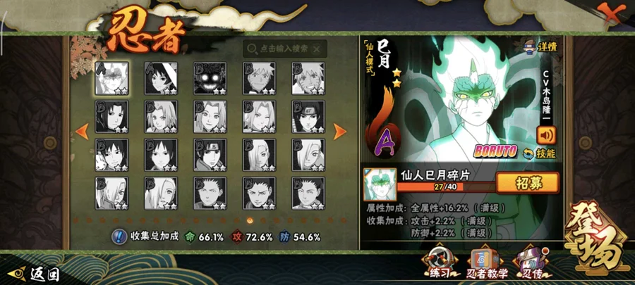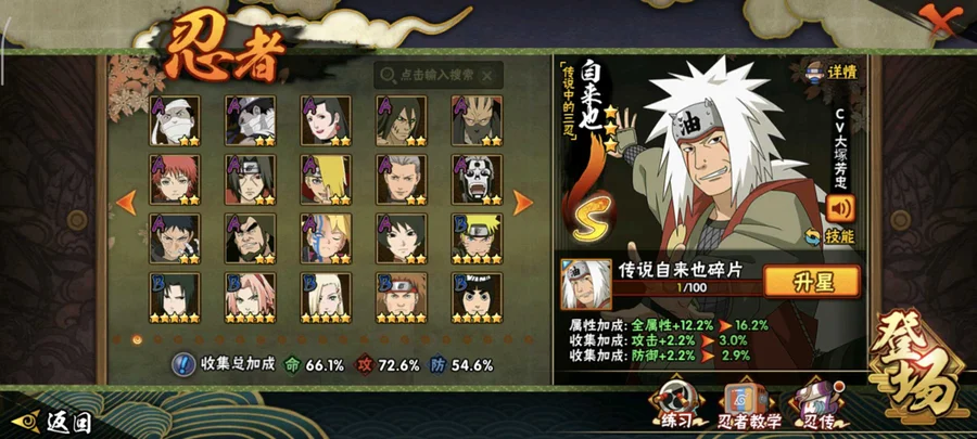 910萬戰力 傳説自來也 須佐止水 桃式 綱手 百戰佩恩 須佐卡卡西 百戰鼬 骨架 泉奈 百豪櫻 漂帶 漂泊再不斬 穢土再不斬 緋瑠琥 桃博 黑土 不緣 穢土角都 忍戰李 真容卡卡西 近松千代 神農等 通灵熊貓 辛牙 蛞蝓 零尾
