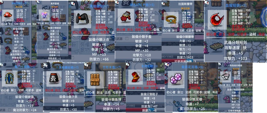 裝備欄很多裝都沒賣... 自己挖(ex: 霸傑、狗刀、+8幸披、+8幸盾、卡敏棒...)
