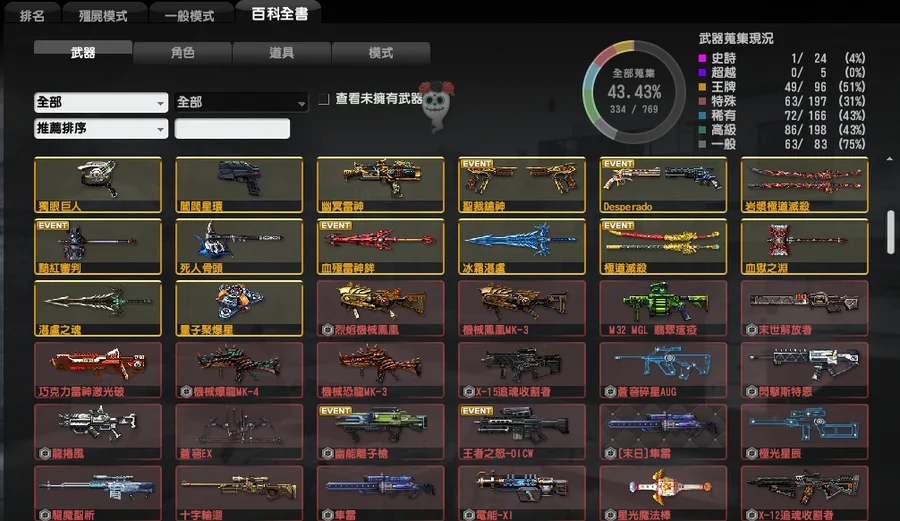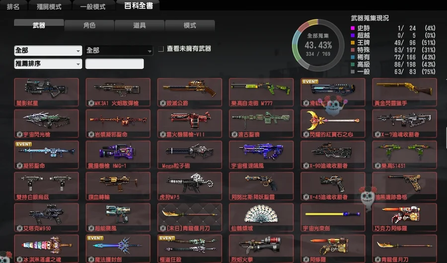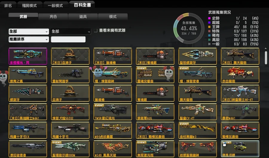 輕鬆可上粉稱~稀有多絕版塗料槍枝、岩漿系列全套、超帥小刀菁英殭屍紀錄