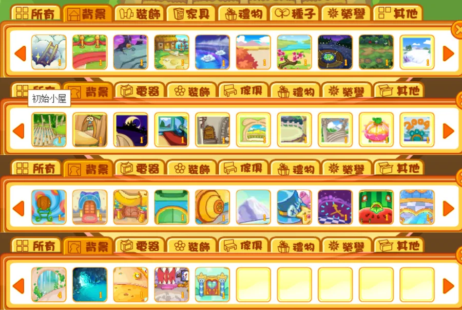.稀有裝:圓點紅暈/葵葵頭套/春天花環/雙節棍/溫暖圍巾/奶牛裝/背帶褲/'糖果裙/麼麼公主裙/草莓T