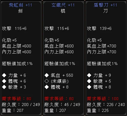 60+11棍1063,可加購48~64+10防具一套和其他60+11武器,60+11棍售出前不賣48~64+10防具一套和其他60+11武器
