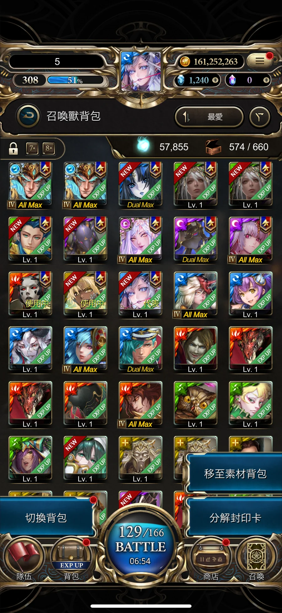 帳號B:有進度1240石+新年三黑金(光1水2)+早安天照+凱撒+莉莉絲=1750