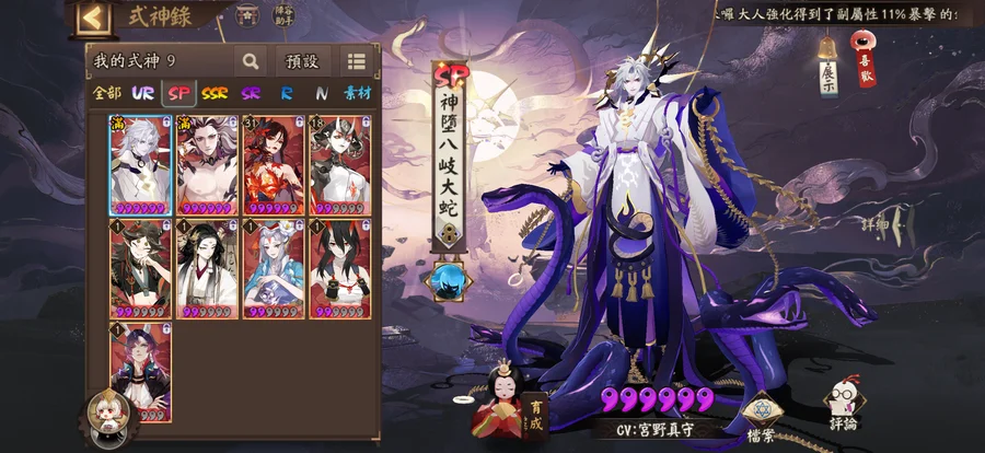 【45等】SP神墮八岐大蛇 鬼王酒吞童子 心狩鬼女紅葉 SSR須佐之男 千姬 雪御前