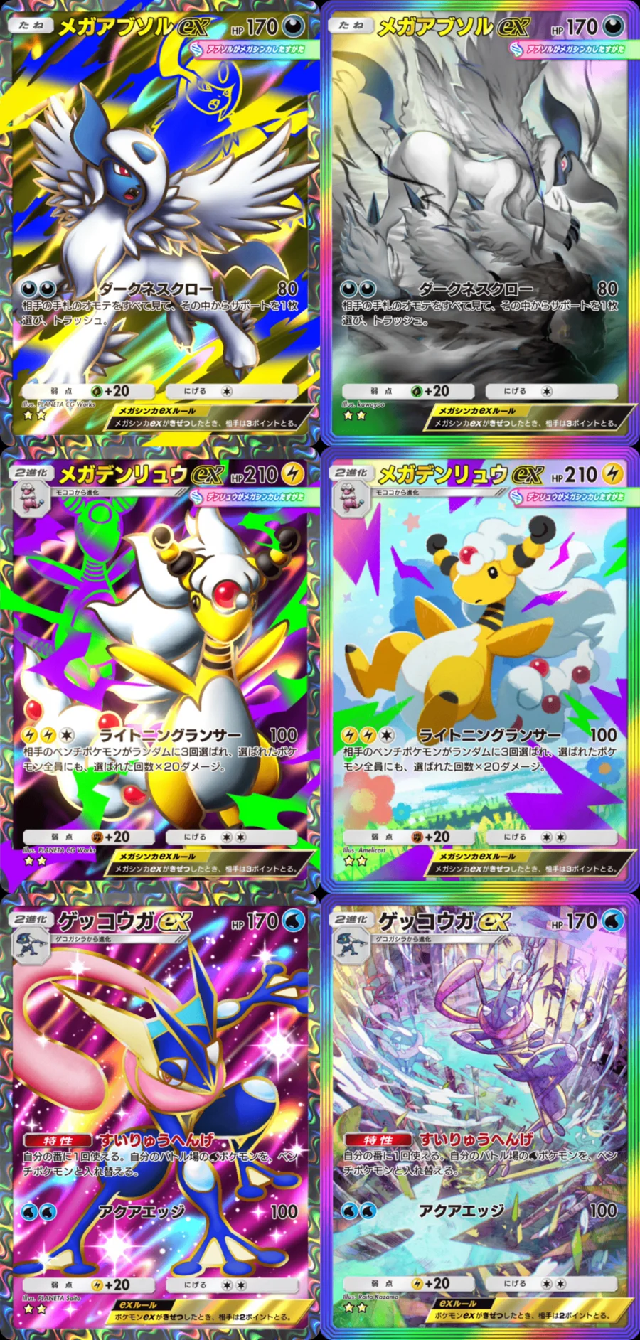 超級阿勃梭魯EX、超級電龍EX、甲賀忍蛙EX、雷伊布EX