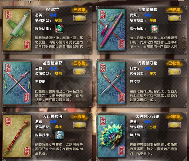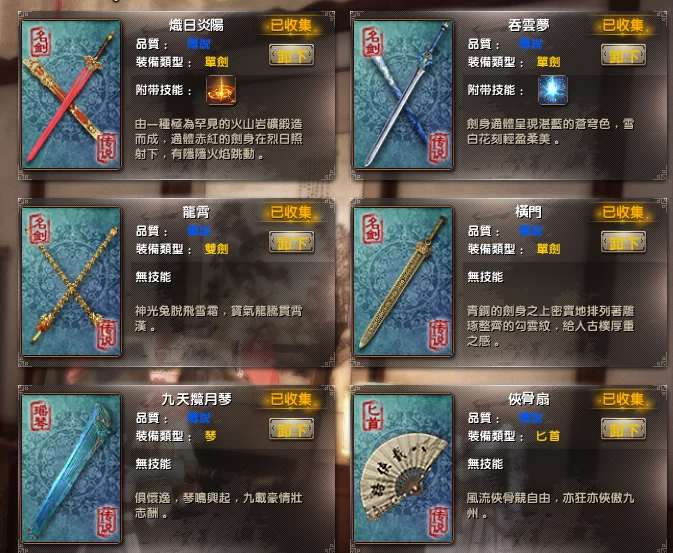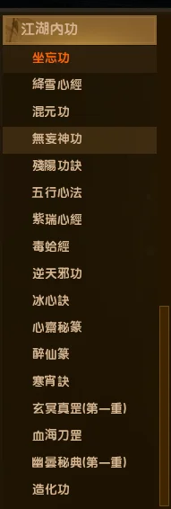 主要內功無妄86 殘陽75 混元75 血刀75 逆天75 其他都56 64