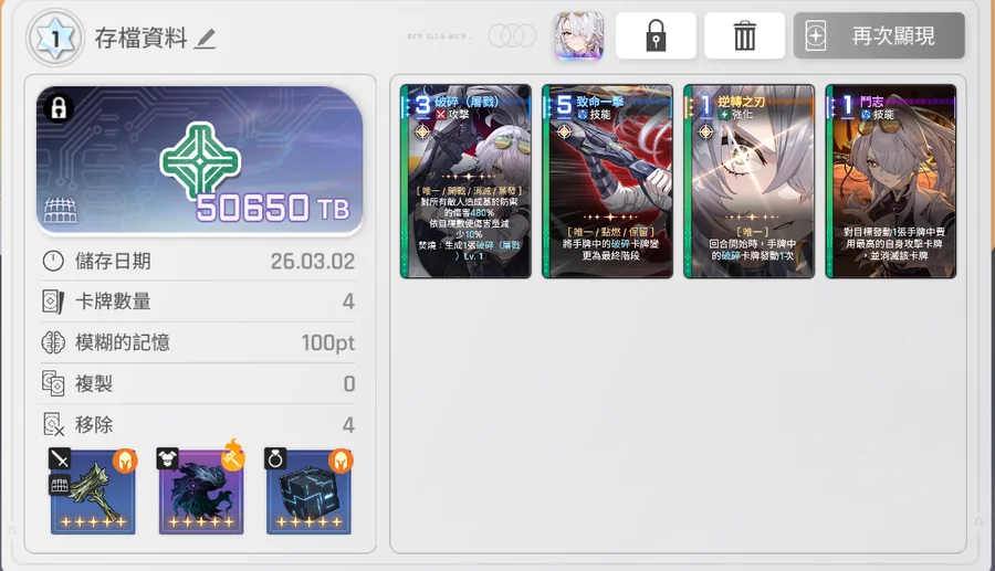 練度推薦主C50~60等,記憶碎片堆高雙爆+防禦or攻擊,生存位堆高防禦