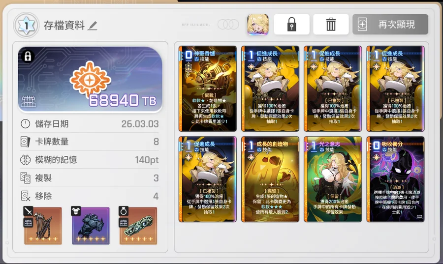 百麗兒破綻強化卡*4張,刪除基礎+2獨特,一個孢子,巧克力閃抽1保留
