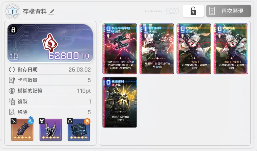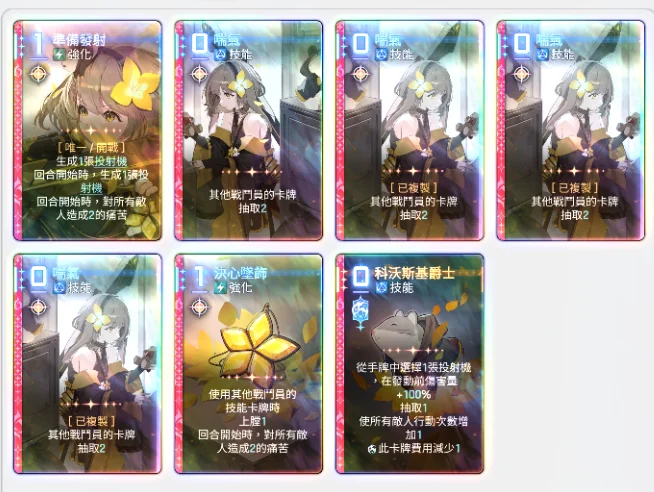 卡莉佩禿鷹發射*3張,刪除基礎+2獨特,越精簡越好,主要破費用盾跟保生存