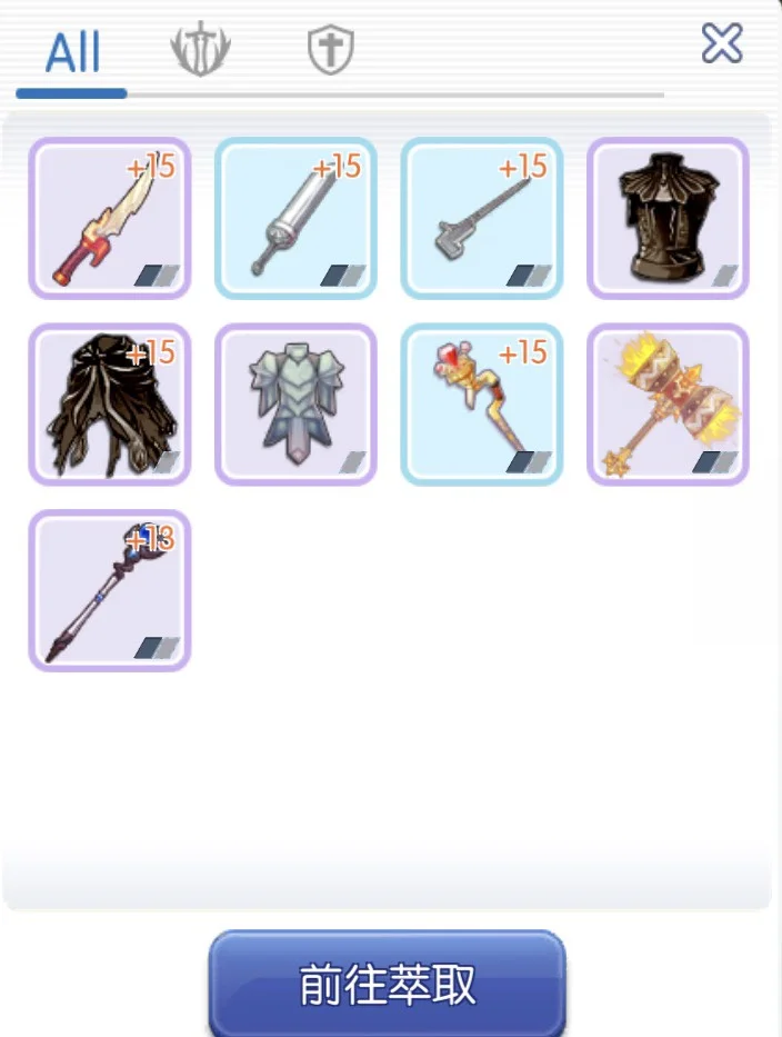 武器:+15生之時(利刃4)、+15狂熱裁決者(利刃4)、+10赫格尼之劍(利刃4)、+15蒼炎劍(利刃4)、+15黑炎劍(利刃4)、+15伯利恒之星(鬥志4)、+15天譴(利刃4)、+15命運之刃(鬥志4)、+15泰坦(利刃4)