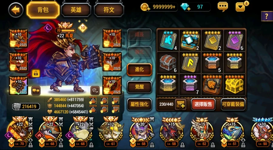目前每天都會掛機一周可以拿超過50個 優質英雄召喚書 (鑽石250召喚10次)