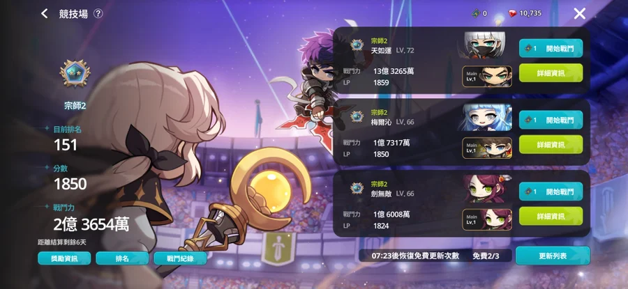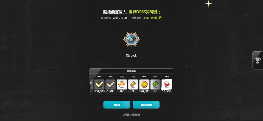 競技場跟其他每週獎勵落在 100~150 名之間 可以慢慢農