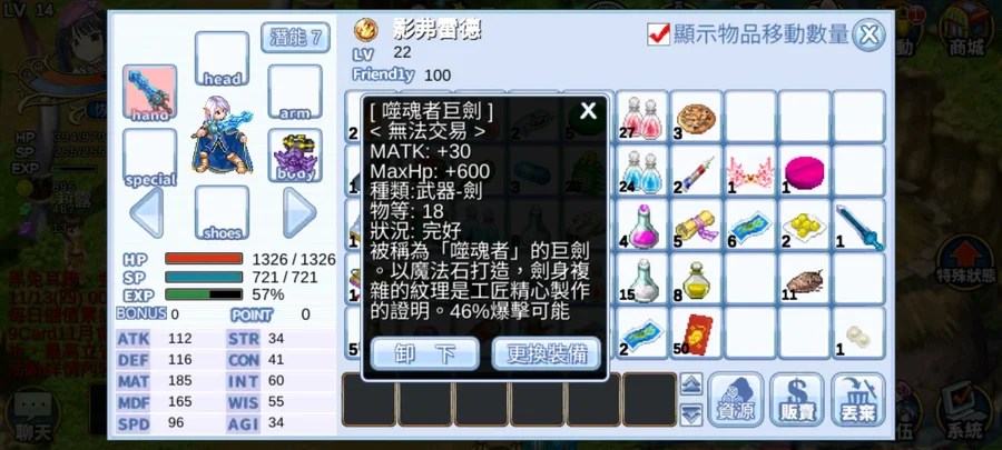 新服星河蒼穹/女水屬(休閒格調)/影弗雷德+轉生丹+魂者巨劍爆武