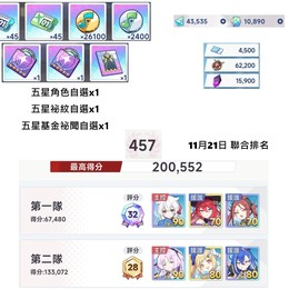 不接受議價如圖、如標題,如賣場價格,月卡還有2個月,包裡還有185抽,再加上現有鑽石等於帳號有11萬鑽,採購商店裡面的積分材料都存著,可以再換好多張5星祕聞,千都世2命、蒼蘭1命,第一季總力戰排名730,目前聯合討伐排名如圖,主C技能只升到6、其他援護角技能只升到5,周本材料一次都沒消耗過,基本上因為練度已經夠打通全部關卡+活動排名都是前10%,所以很多東西都扣著沒花,開服至今花費約2.5萬。