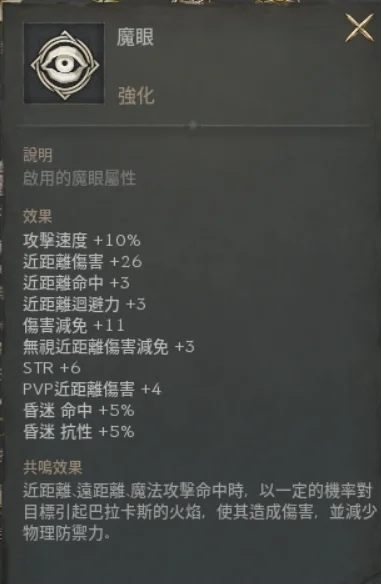 【魔眼2+牧羊犬素質】:血量60,558、攻/命483/660、防/魔防723/567、減傷/PVP減傷274/87、暈命/抗暈77/175%