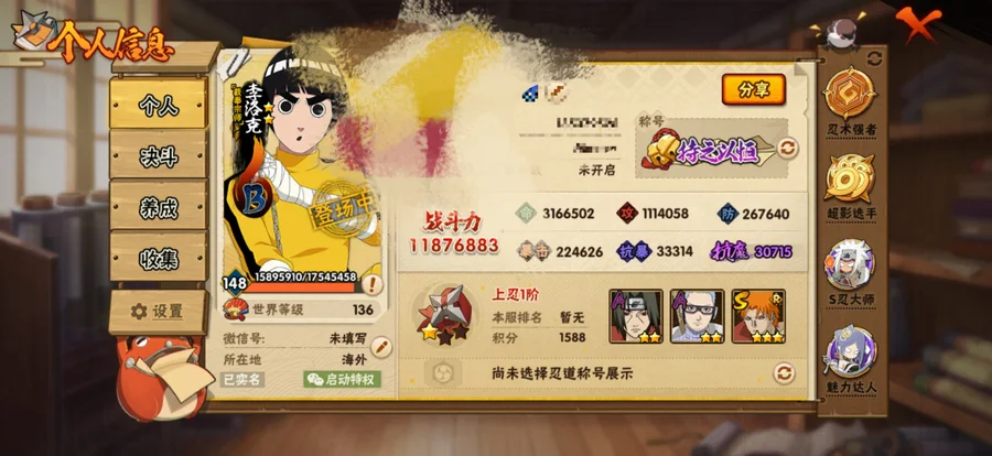熊貓螃蟹萬蛇都有 霸體9等 漂泊帶土造型跟帶土勝負已分盾狗造型面麻跟暴怒小孩造型都有 一共儲了一萬人民幣 多課金忍者通靈