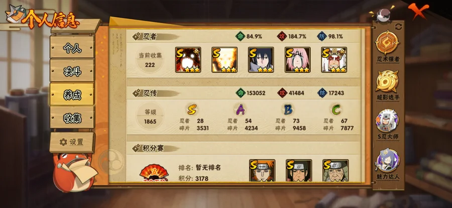 小孩雞翅面麻黑絕漂泊帶土盾狗新水超哥羅砂紅夜帶土創立班暴怒六尾,這賽季忍法帖買了198可以出班跟創立柱(91片)可以到30S 新A付首付了