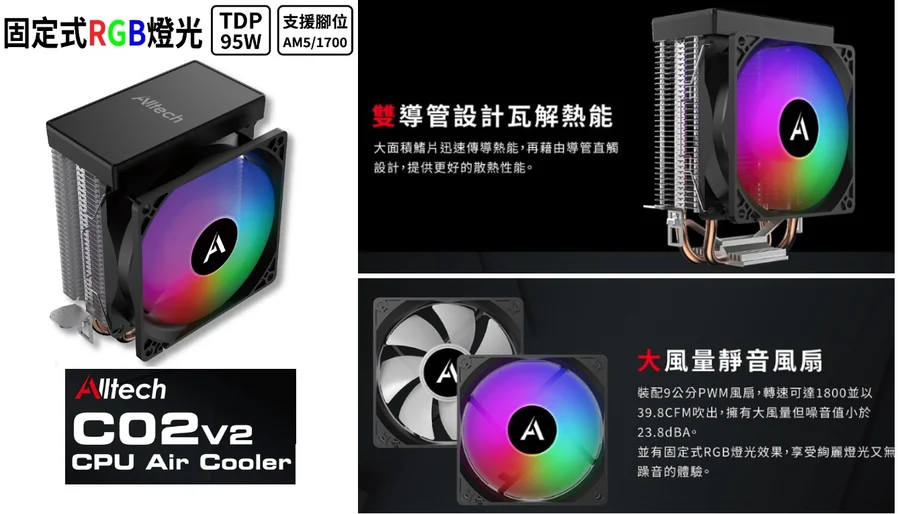 AMD R5 3400G 4核8緒CPU (內建VEGA11高效能顯示)+Alltech CO2 v2發光塔扇+技嘉 A520M-K V2 主機板.