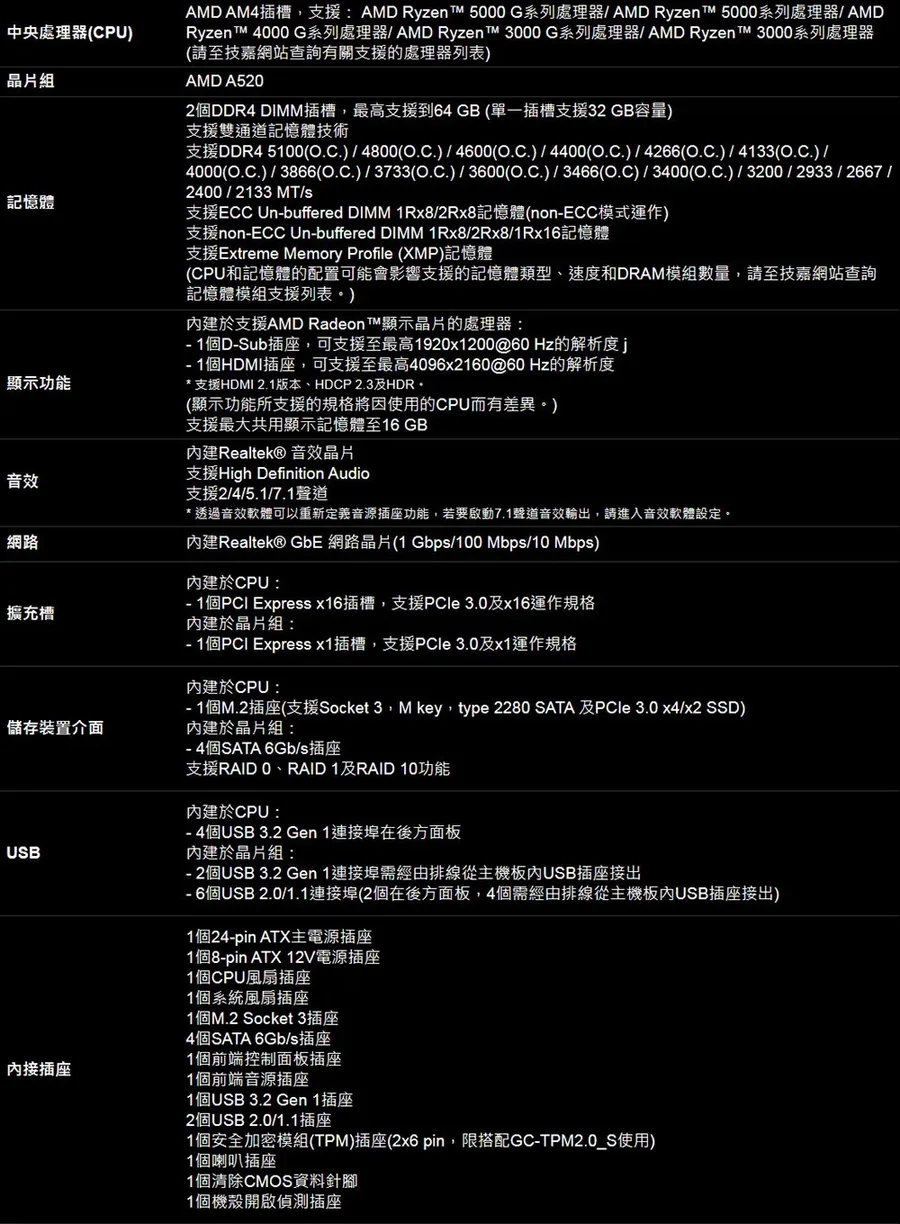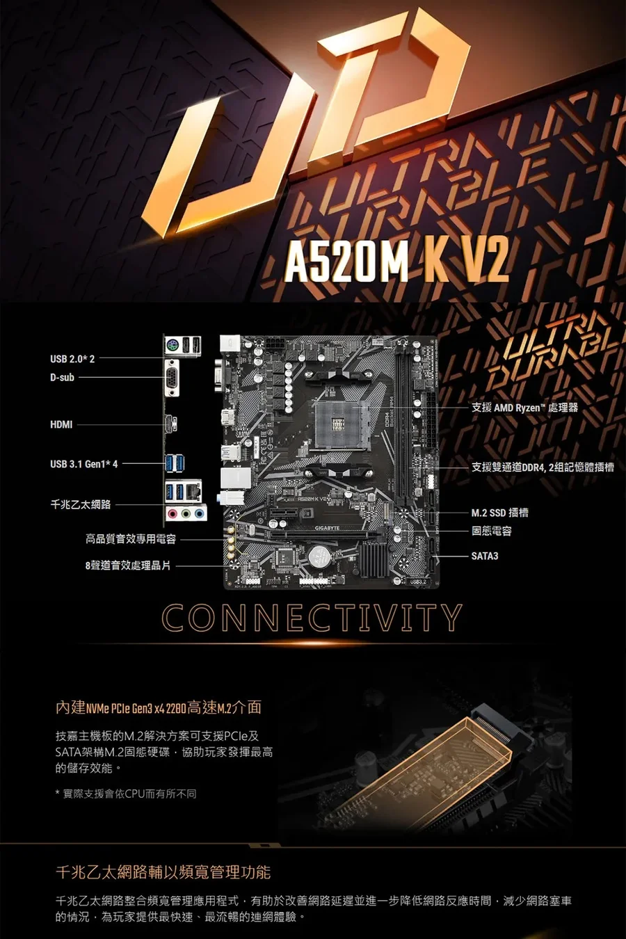 全新 技嘉 A520M-K V2 主機板 AM4 腳位