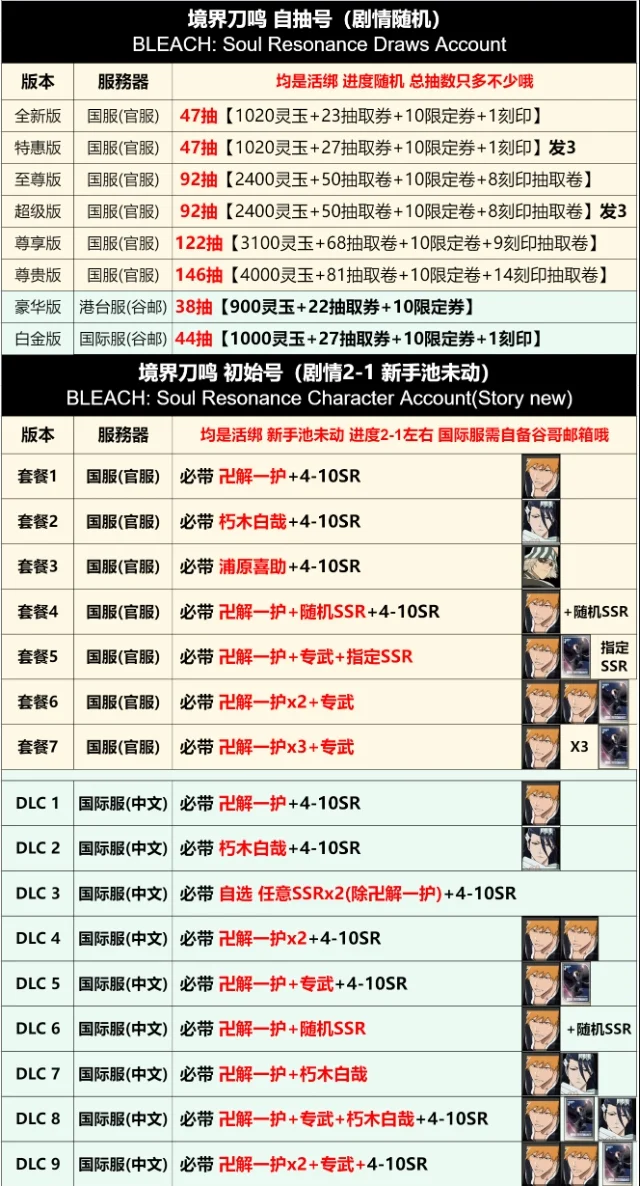全 8591 首家 【新遊】境界刀鳴國際服國服初始號BLEACH: Soul Resonance自抽號石頭自選組合號死神手遊 BLEACH:刀鳴