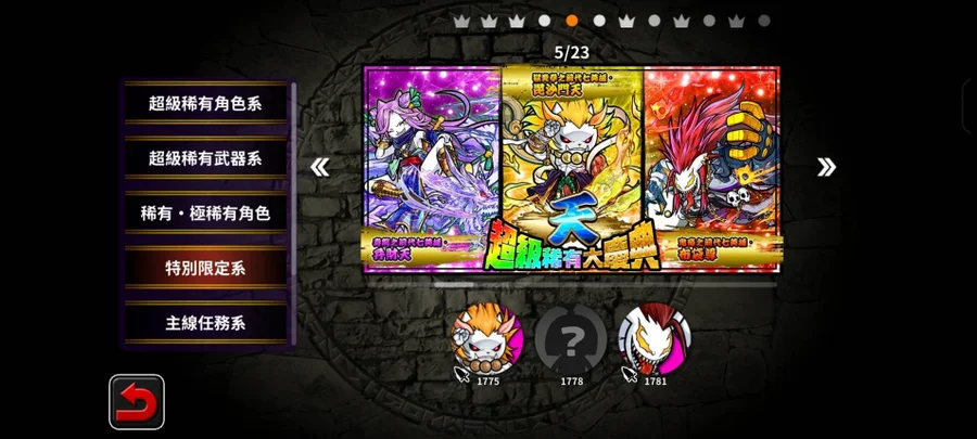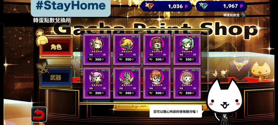 5.轉蛋點數兌換,角色點數1035點、武器點數1965點。