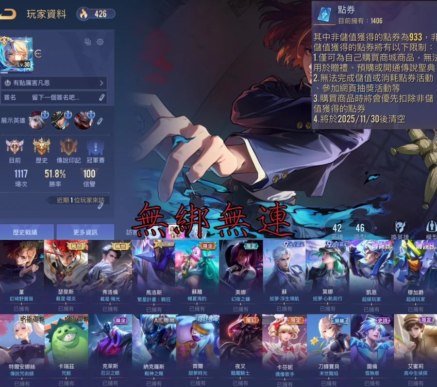 【Garena帳無綁無連、青銅、無VIP、1英、1造】多帳號選擇二服有興趣說一下要圖幾感謝直下無視