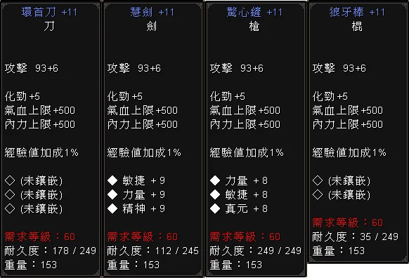 48~64+10防具+60+11棍不拆賣4255,可加購其他60+11武器