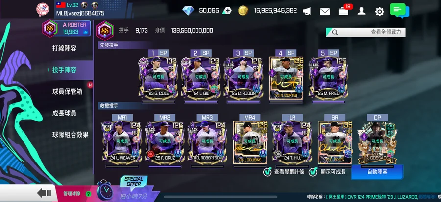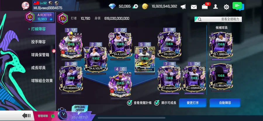 【92等】洋基隊 ss戰力19963 多鑽石金幣