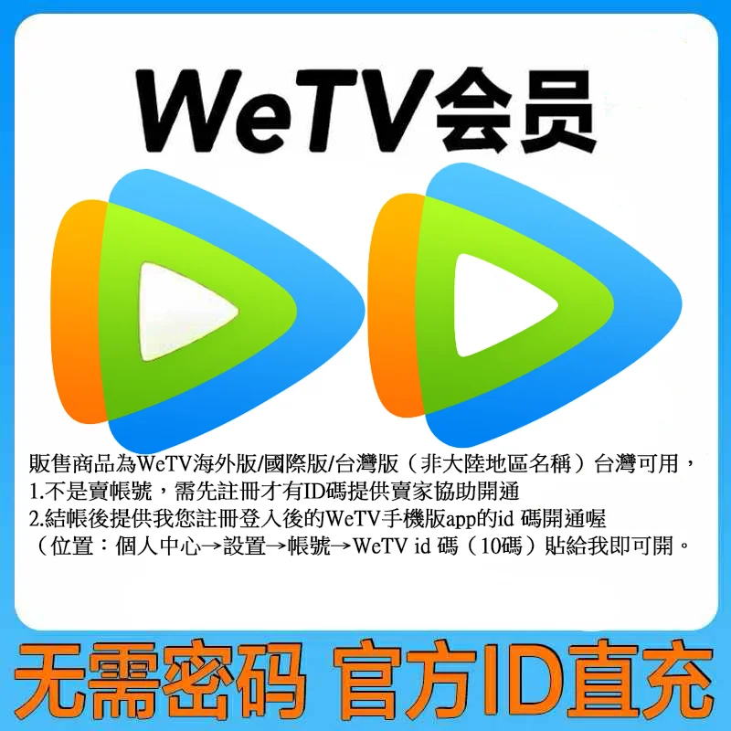 2.付款後提供我您註冊登入後的WeTV手機版app的id 碼開通喔(位置:個人中心→設置→帳號→WeTV id 碼(10碼)貼給我即可。