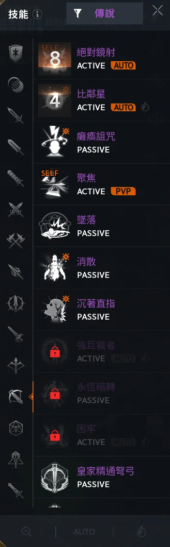 紫色共通技能:攻擊增速加持、極速誦咒、推進III、免疫、精神勝利、絕對精準III、衝擊抵抗II、抑制II、精準命中、衝擊抵禦、實力記憶、帝國精通I、昇華防護